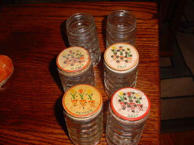 Title (ebay affiliate link): Vintage Set 6 Rippled Hoosier Sellers Salt Pepper Shakers w/4 orig lids