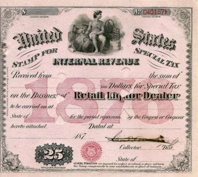 Antique 1876 MOONSHINE Whiskey STILL Liquor License Brewer Civil War Tax Stamp