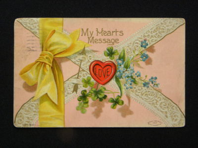 Title (ebay affiliate link): Vintage Embossed 1910 Valentine's Day Post Card My Hearts Message