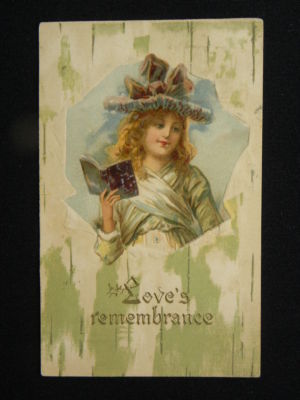 Title (ebay affiliate link): Vintage Embossed 1907 Valentine's Day Post Card Girl w/Book