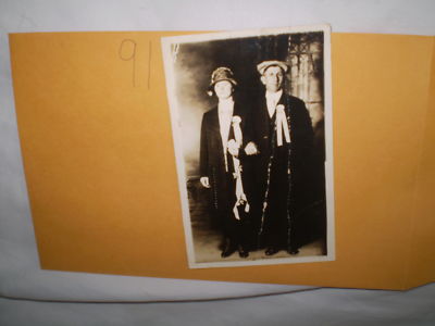 MAN AND WOMEN DRESSED IN BLACK WITH RIBBONS AZO OLD RPPC POSTCARD