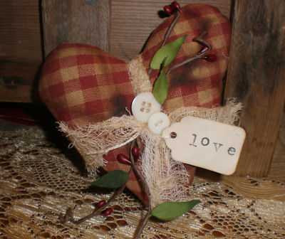 Title (ebay affiliate link): PRIMITIVE "LOVE" VALENTINE FABRIC HEART..SHELF SITTER...BOWL FILLER...