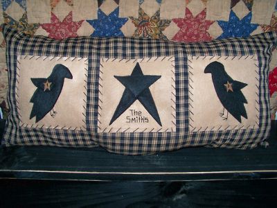 Title (ebay affiliate link): PERSONALIZED Pillow Cover Primitive Stitchery Crows Country Decor Welcome Rustic