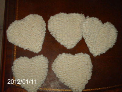 HANDMADE PRIMITIVE FOLK ART WOOL IVORY HEART BOWL FILLERS~PRIM