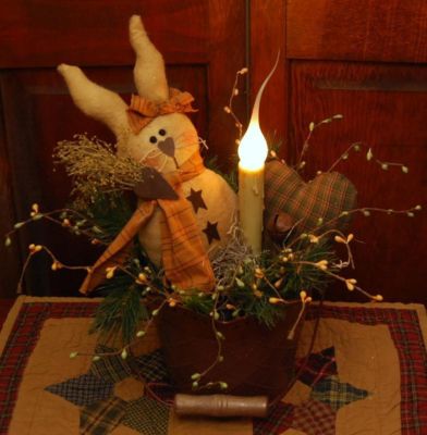 Title (ebay affiliate link): **PRIMITIVE HANDMADE EASTER BUNNY RABBIT CANDLE LAMP RUSTY BUCKET ARRANGEMENT**