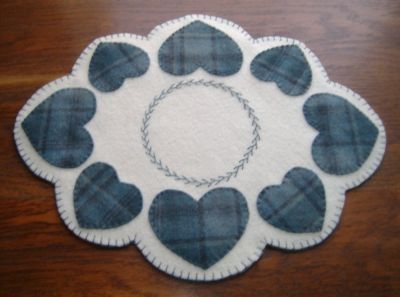 Title (ebay affiliate link): Primitive Wool Penny Rug~Valentines Day~Hearts~Jar Candle Mat~Doily~Homemade