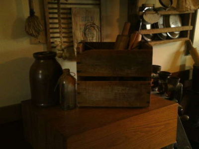 Title (ebay affiliate link): Primitive Old Farm House Slatted Box with Leather Handle