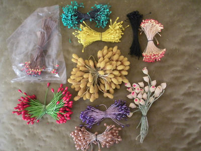 Title (ebay affiliate link): ANTIQUE VINTAGE MILLINERY LOT STAMENS DOLL BONNET FLOWERS