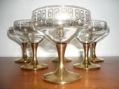 VINTAGE/RETRO GLASS GOLD 6 SAUCER CHAMPAGNE GLASSES