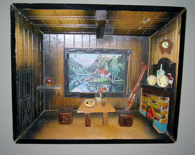 Antique Handcarved Wood Diorama Shadow Box Made in Japan Picture