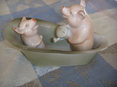 Title (ebay affiliate link): Two Jolly Pink Pigs in a Tub with a Watering Can Germany circa 1910 N/R