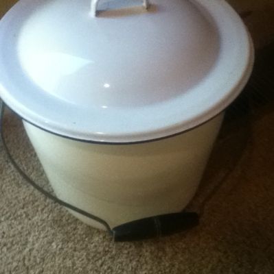 Vintage Black & White Chamber Pot Enamelware Enamel w/lid