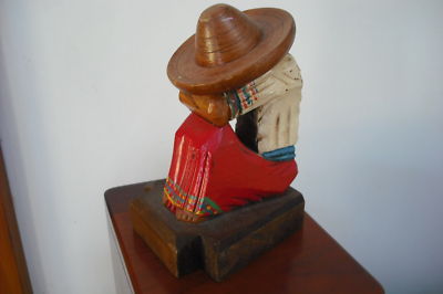 ANTIQUE, CARVED MEXICAN HANDPAINTED WOODEN FIGURE