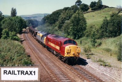 RAILWAY DIESELS PHOTOGRAPH - 37 057 + 37 133 NEAR CHINLEY - 19/7/1997. (PHOTO).