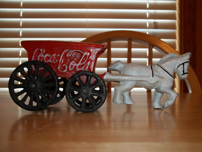 Title (ebay affiliate link): Vintage Cast Iron Coca Cola Wagon and Horse