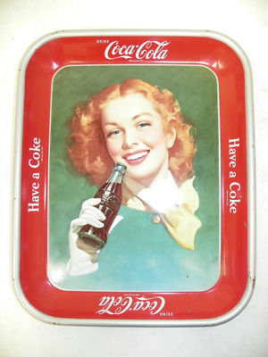 Title (ebay affiliate link): 1940's Coke Coca-Cola Smiling Red Head Advertising Metal Serving Tray - C108