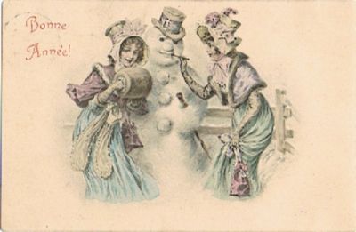 Title (ebay affiliate link): Postcard 933183 Art Women Bonnets Winter Put Lipstick on Snowman Tophat