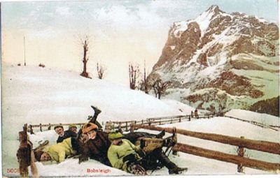 Title (ebay affiliate link): Postcard 933187 People Crash Bobsleigh Taboganning Winter Mountain Snow