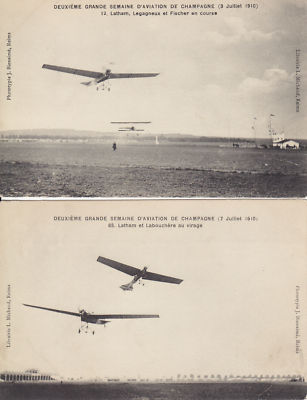 3 pcs AVIATION: pioneers flight show Champagne 1910 LATHAM;FISCHDER;MUMM etc