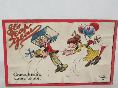 1912 DWIG LEAP YEAR SER #401 POSTCARD " ITS LEAP YEAR " BIRDIE COME TO ME FLYING