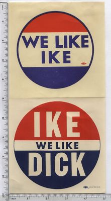 Title (ebay affiliate link): 1952 1956 Election EISENHOWER NIXON "WE LIKE IKE" "IKE we like DICK" - 2 Decals