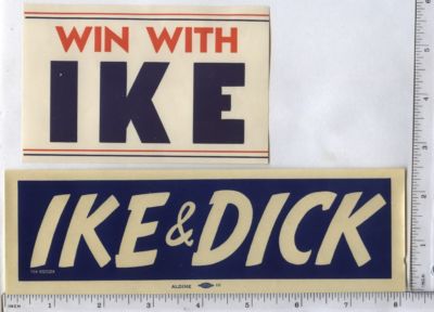 Title (ebay affiliate link): 1952 "DEMOCRAT FOR IKE & NIXON" and "VET for IKE" 2 Bumper Stickers- Decals