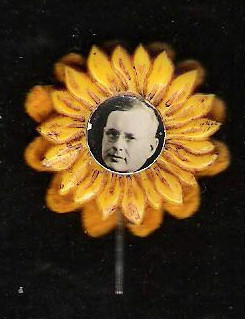 2 ALF LANDON 1936 items: photo sunflower stickpin, LANDON KNOX sticker
