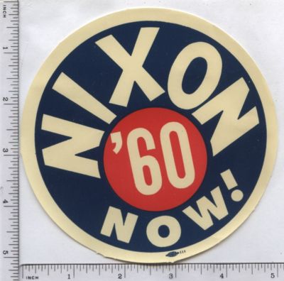 Title (ebay affiliate link): 1960 Election - "NIXON '60 NOW" - Red, White and Blue Round Window Decal
