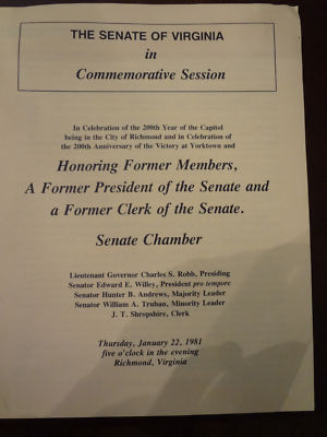 1981 Commemorative Calendar of Virginia VA Senate Doug Wilder RARE Program Robb