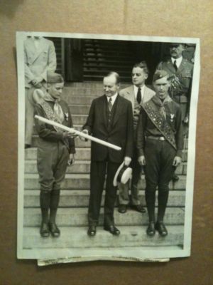 Title (ebay affiliate link): 1928 Pres Calvin Coolidge receives gift from Boy Scouts Wire Photo