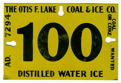 Title (ebay affiliate link): Antique 4"x6" metal ice sign - Otis F. Lake Coal & Ice Co., Dayton Ohio