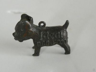Title (ebay affiliate link): Vtg Miniature Ideal Dog Food Premium Good Luck Figural Charm Advertising 1950's