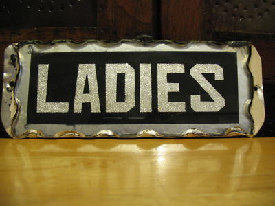 ANITQUE EARLY 1900 THUMBPRINT GLASS LADIES RESTROOM SIGN