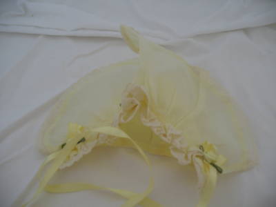 Sweet organdy bonnet for vintage antique doll 12-13"
