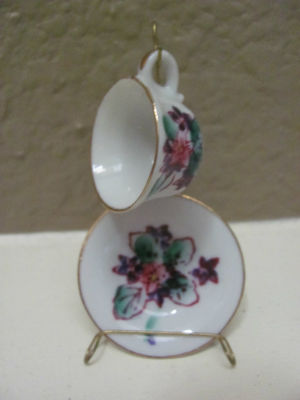 TINY Antique Doll China Cup & Saucer Set w/ Stand Made in Japan ...DARLING!!!