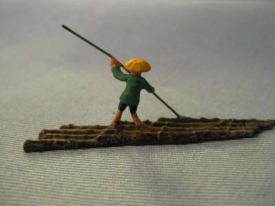 Antique/Vintage Miniature Japanese Metal Raft with Man