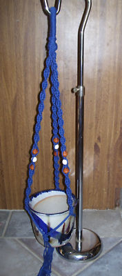 Title (ebay affiliate link): Vintage Ceramic Clay Planter W Macrame Hanging Pot Blue Drip In Door Out 60s 70s
