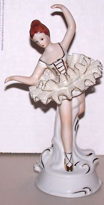 OLD DRESDEN-LIKE LACE FIGURINE, Ballerina