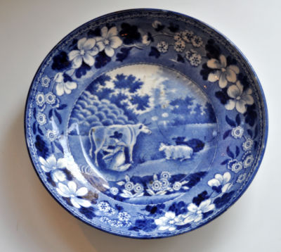 19th English Pearlware Blue & White Davenport Milkmaid Pattern dish