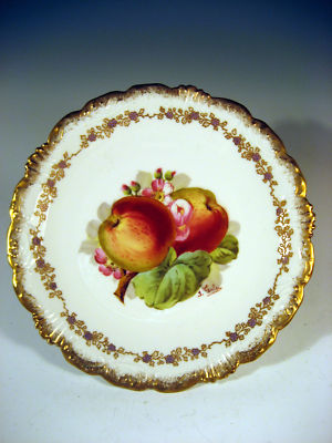 S M Limoges France Porcelain Plate Apple Decor Signed J. Golse ca. 1900