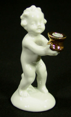 ANTIQUE PORCELAIN NUDE BOY FIGURINE CANDLE STICK HOLDER