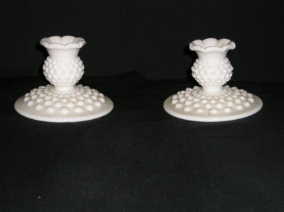 VINTAGE HOBNAIL MILK GLASS CANDLE HOLDERS