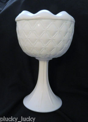 Title (ebay affiliate link): Milk Glass Tall Compote Indiana Glass Duette Pattern - Quilted patterned look