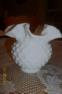 Title (ebay affiliate link): Vintage Hobnail Milk Glass Vase, Ribbon top, Beautiful Condition,Estate Find!