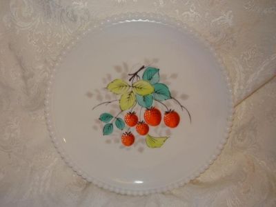 Title (ebay affiliate link): Vintage 1950's WESTMORELAND Bead Edge Milk Strawberry Fruit Painted GLASS PLATE