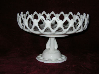 Title (ebay affiliate link): Westmoreland Milk Glass Lace Rimmed Dish with a Doric Base