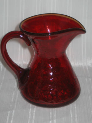 Title (ebay affiliate link): Vintage Ruby Red Amberina Rim Handblown Depression Era Glass Cream Milk Pitcher