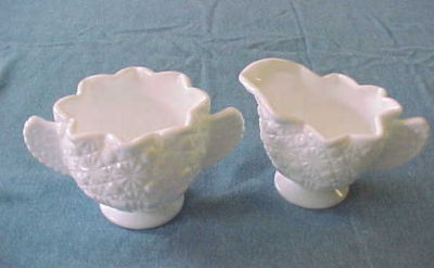 FANCY MILKGLASS SUGAR AND CREAMER SET