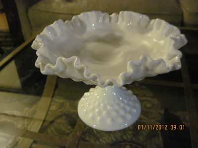 8'' Fenton Art glass/ Milk glass Crimped Hobnail Compote