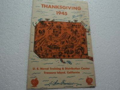 Title (ebay affiliate link): THANKSGIVING 1945 U.S. NAVAL TREASURE ISLAND, CALIF. pamphlet